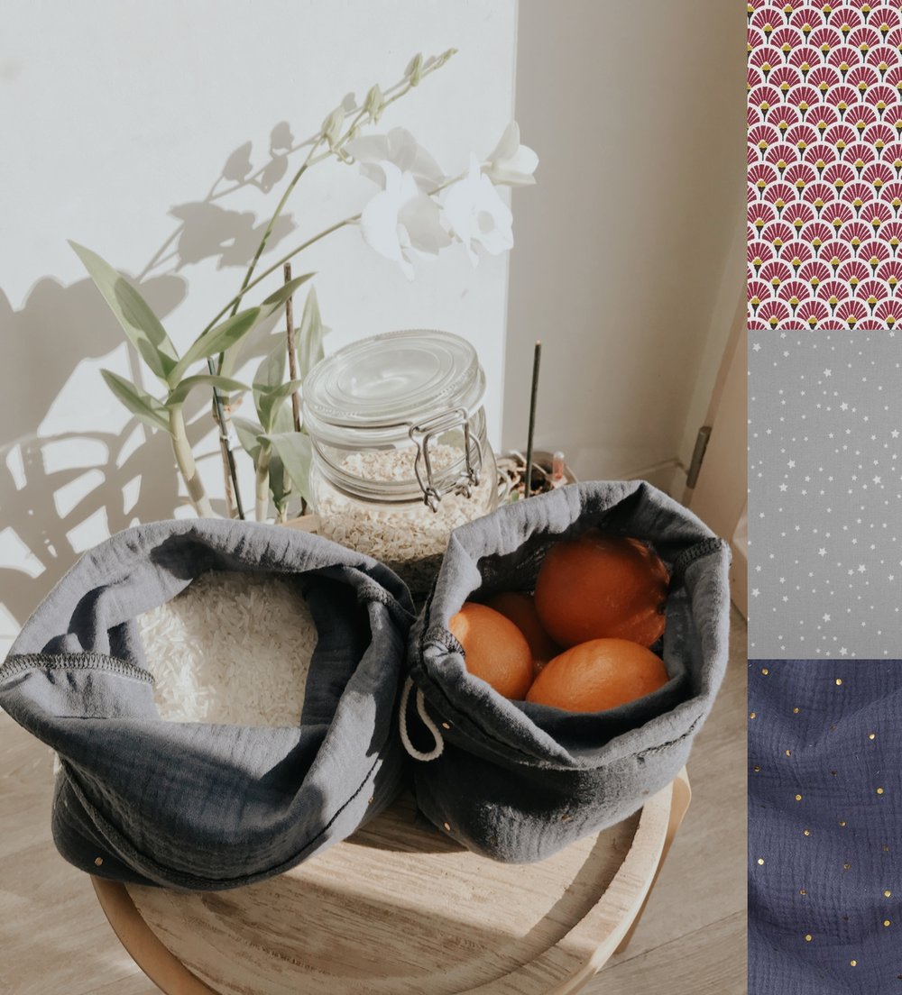 Sacs à vrac réutilisables fait main en tissu gaze de coton/coton 🌻